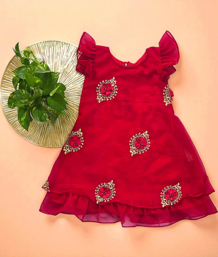 Designer Red Dress for Baby Girls with Floral Sequin Work