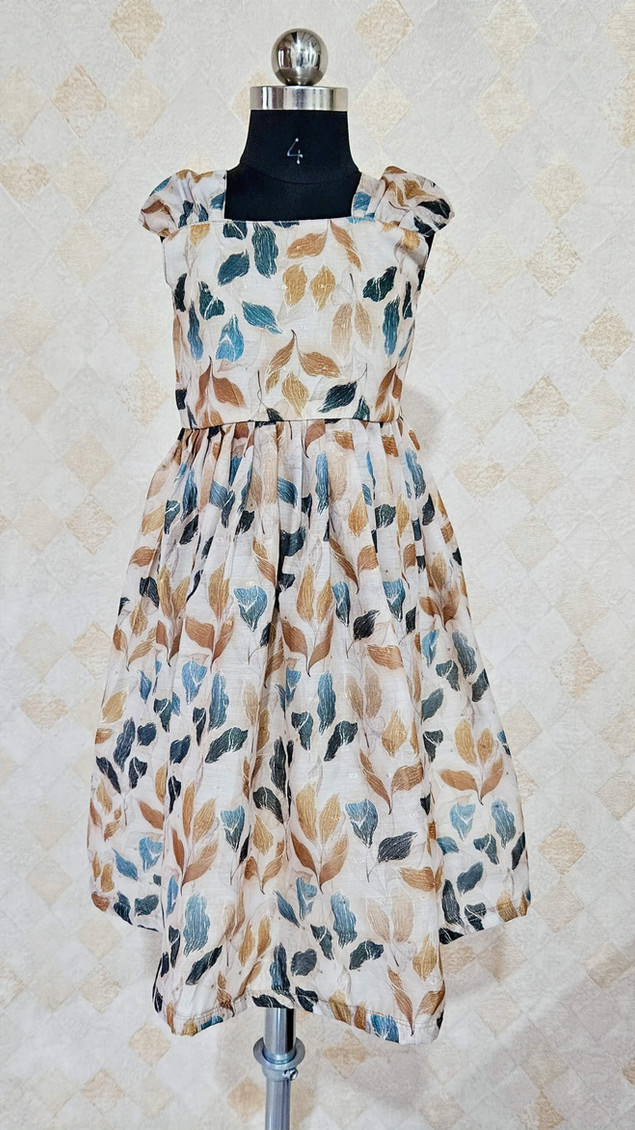 Elegant Chanderi Leaf Print Frock – Girls Festive & Casual Dress